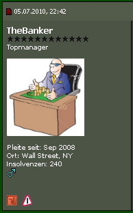 TheBenker -> TheBanker Finanzkrise -> Pleite (Sep 2008 = Lehman Brothers), Insolvenzen -> schwarze WM-Trauersterne